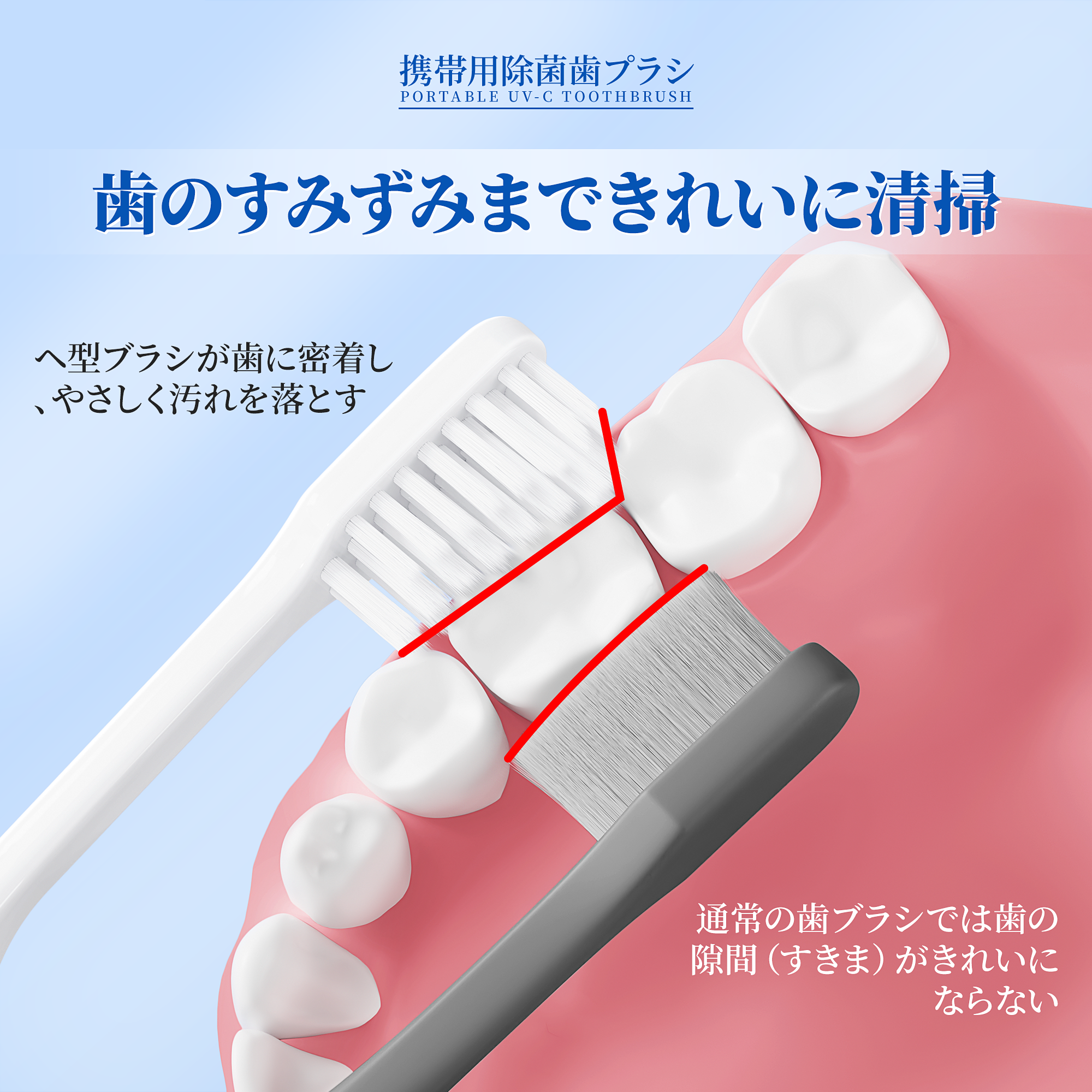 驚異の 99.9% 除菌率を持つ UV-C 紫外線除菌機能を搭載。使用後に専用ケースに収納するだけで 60 秒間自動除菌し、大腸菌・黄色ブドウ球菌・インフルエンザウイルスなどを効果的に除去。化学物質を使用せず、環境にも優しい衛生管理を実現します。